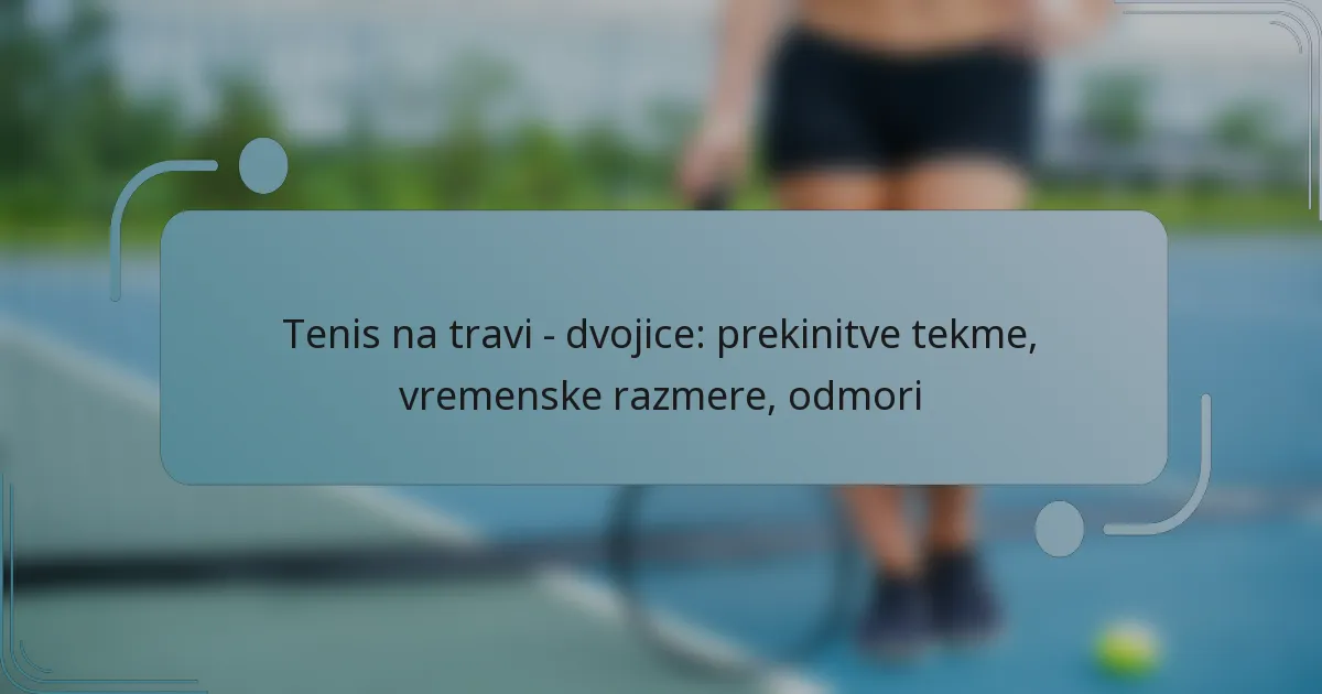 Tekme v dvojicah na travnatem tenisu se lahko prekinejo zaradi različnih dejavnikov, vključno s poškodbami, spori in vremenskimi razmerami. Vreme igra ključno vlogo, saj lahko dež, veter in vročina vplivajo na razporeditev in igro igralcev. Poleg tega regulirani odmori omogočajo igralcem, da se ukvarjajo s poškodbami ali težavami z opremo, kar je lahko ključno za ohranjanje strategije in uspešnosti med igro.