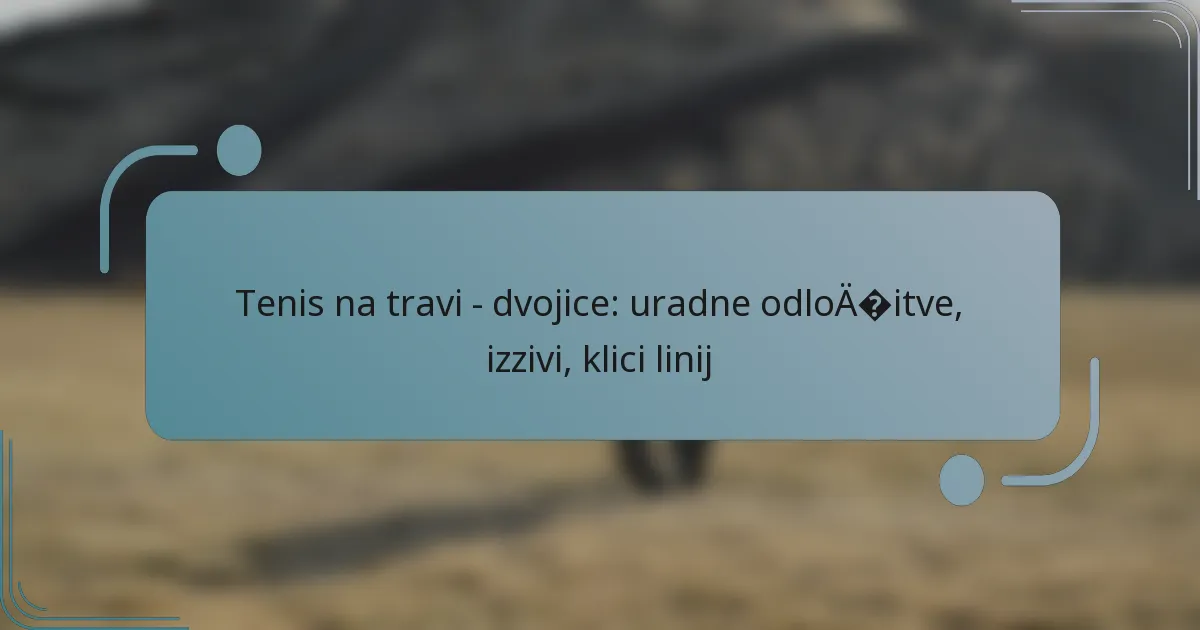 Tenis na travi v dvojicah urejajo uradne pravila, ki določajo serviranje, točkovanje in postavitev igralcev, pri čemer poudarjajo timsko delo in strateško igro. Igralci imajo priložnost izpodbijati odločitve sodnikov glede črt, kar zahteva jasno komunikacijo in upoštevanje določenih protokolov. Natančne odločitve glede črt so ključne za ohranjanje integritete igre, saj neposredno vplivajo na izid točk in splošni potek igre.