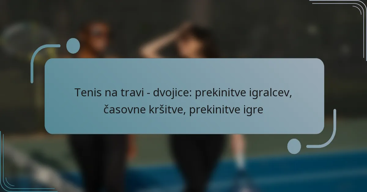 V tenisu na travi v dvojicah posebna pravila urejajo odmori igralcev, kršitve časa in prekinitve igre, da se zagotovi poštena igra in ohrani tempo tekme. Ti predpisi določajo sprejemljive okoliščine za odmore, kazni za kršitve časa in postopke za obravnavo prekinitev.