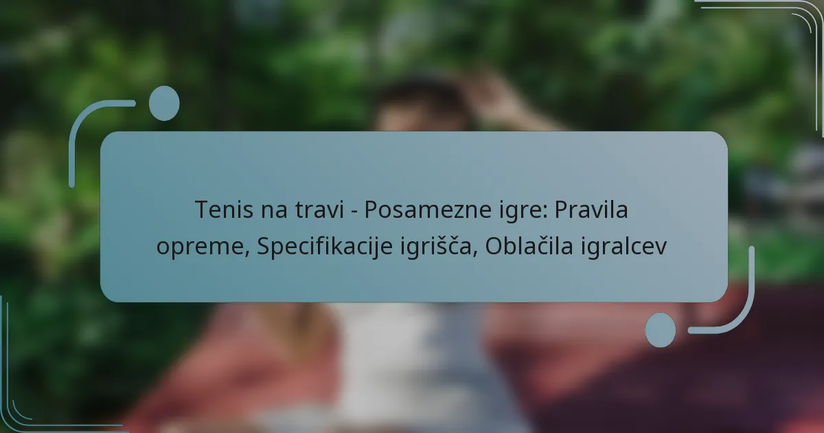 Tenis na travi v posamični konkurenci vključuje specifična pravila o opremi, ki urejajo standarde za loparje, žoge in materiale ter spodbujajo pošteno igro v vseh tekmovanjih. Oblika igrišča, prilagojena za dvoboje ena na ena, vključuje določene dimenzije in vrste površin, ki so ključne za pravilno igro. Poleg tega se morajo igralci držati pravil oblačenja, ki dajejo prednost udobju in zmogljivosti, kar povečuje njihovo mobilnost in učinkovitost med tekmovanji.