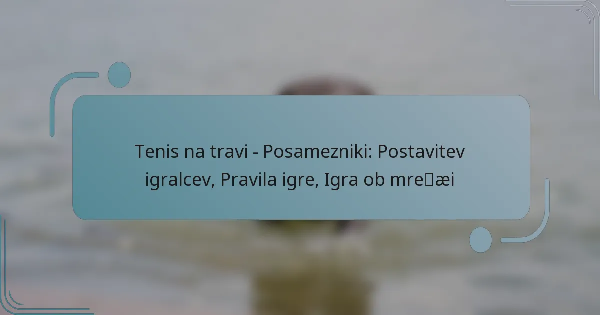 Igranje ob mreži v tenisu posameznikov je ključno za pridobitev prednosti in hitro zaključevanje točk. Učinkovita igra ob mreži zahteva časovno usklajevanje, tehniko in strateško odločanje za izkoriščanje priložnosti med izmenjavami.
