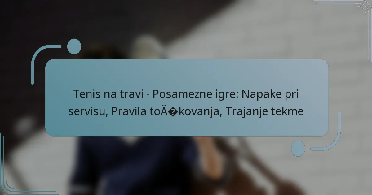 Tenis na travi v posameznih igrah vključuje edinstven nabor pravil, vključno z napakami pri servisu, ki lahko vplivajo na igro in strategijo igralca. Sistem točkovanja je zasnovan okoli točk, iger in nizov, ki vodijo igralce k zmagi z osvojitvijo določenega števila nizov. Poleg tega se lahko trajanje tekme znatno razlikuje glede na dejavnike, kot so spretnost igralca in format tekme, kar je ključno za razumevanje teh dinamik tako za igralce kot za gledalce.